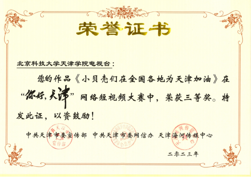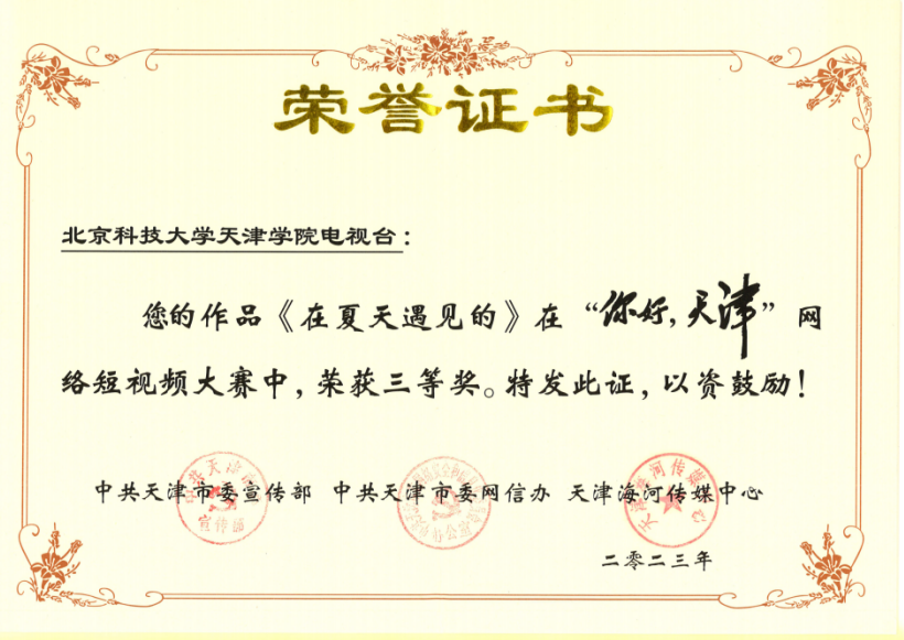 近期,由天津市委宣传部、天津市委网信办、天津海河传媒中心联合举办的“你好,天津”网络短视频大赛获奖结果揭晓。伟德官网电视台《在夏天遇见的》、《小贝壳们在全国各地为天津加油》、《结业典礼正版来啦》3部作品经过激烈的角逐和比拼,突出重围,在本届“你好,天津”短视频年度总决赛荣获三等奖佳绩!
