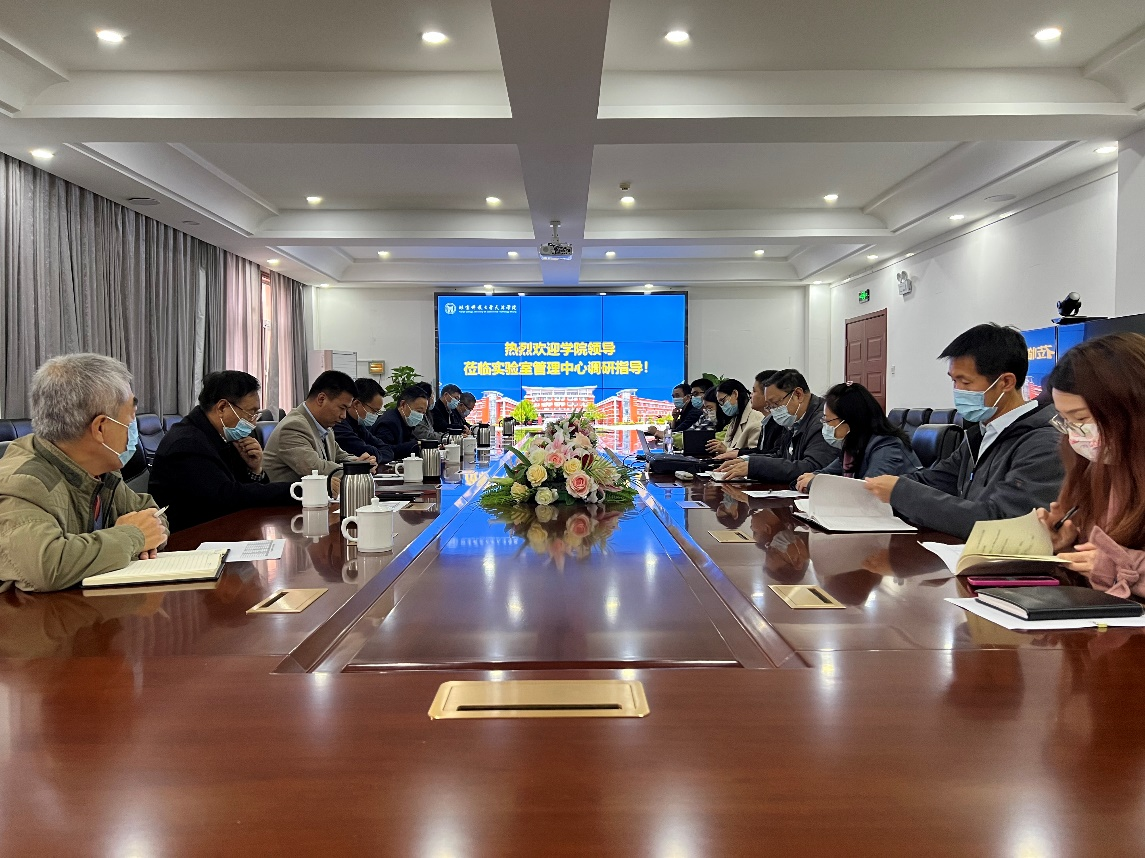 为深入学习贯彻党的二十大精神,深化教育教学改革,推动学院高质量发展,10月28日下午,bevitor伟德国际1946官网院长丁煦生、党委书记叶振楠率学院领导班子成员及相关部门负责人一行9人,深入实验室管理中心调研指导工作,调研座谈会在12教300会议室举行。实验室管理中心全体教师参加调研座谈。