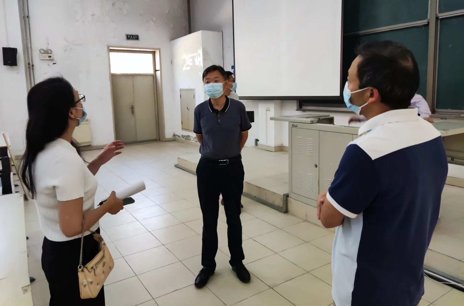 党委副书记赵志南负责理工馆、舞蹈排练厅的检查。赵志南副书记对理工馆教室、舞蹈排练厅的教学环境仔细检查后,对教室环境、卫生条件和多媒体使用情况提出要求。