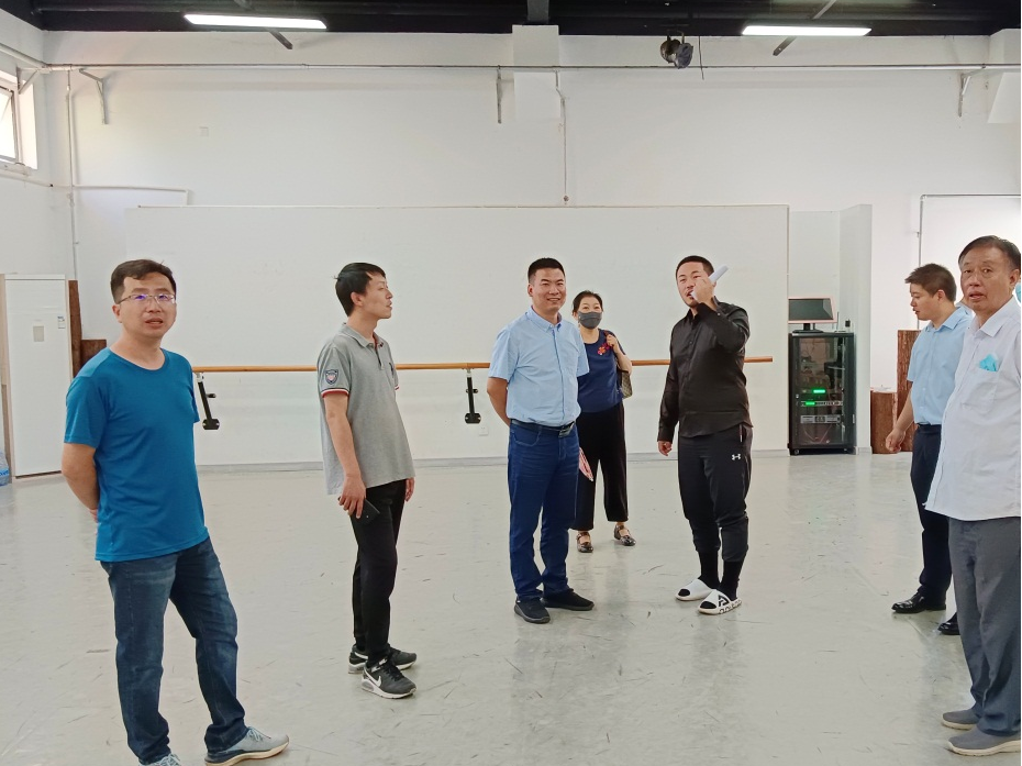党委副书记赵志南,院长助理、学术委员会主席宋存义检查舞蹈排练厅