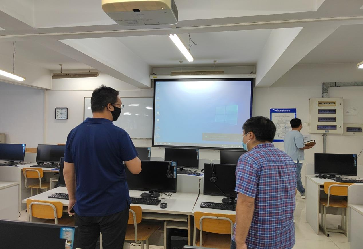 副院长兼财务总监王俊敏检查3教设备