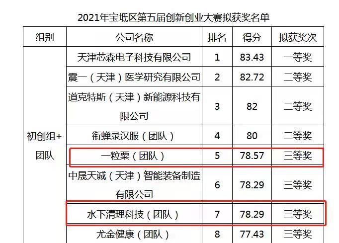 近日,以“科技创新、圆梦宝坻”为主题的“宝坻区第五届创新创业大赛暨第十届中国创新创业大赛”圆满结束。本次大赛由宝坻区科技局、宝坻经济开发区管理委员会、京津中关村科技城管理委员会、天津京津中关村科技城发展有限公司联合主办,宝坻区团委和宝坻区人才办协办,天津北大科技园有限公司承办。大赛宣传期间,伟德官网就鼓励广大师生积极参加此次比赛。经过创业团队的悉心准备,伟德官网《一粒粟》和《水下清理科技》两个项目在所有参赛项目中脱颖而出,荣获三等奖2项。