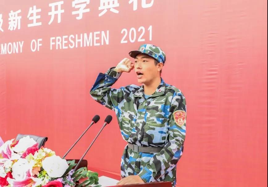 王梓骅同学带领新生庄严宣誓,全体新生精神饱满,情绪高昂,声音铿锵有力,展现出新时代青年学生的风采和精神风貌。