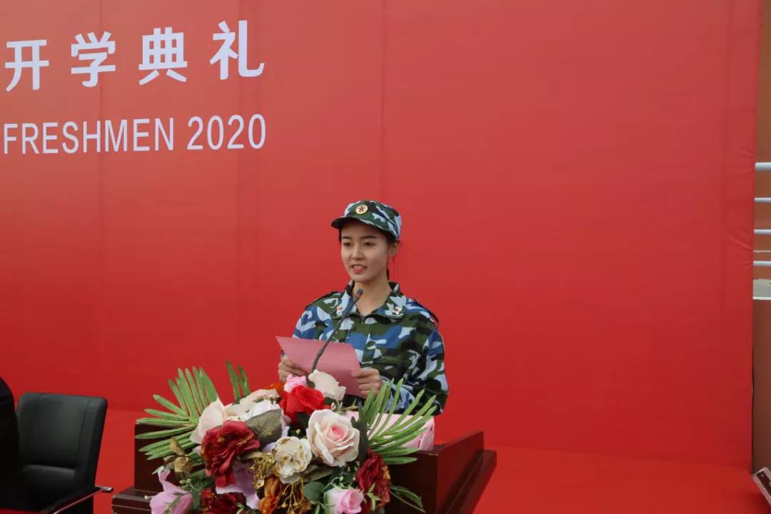 李梓芯同学代表2020级新生发言,她号召全体新同学要时刻牢记习近平总书记对新时代青年嘱托,秉承“明德励学、效实致新”的校训精神,用自己的实际行动来践行使命与担当。
