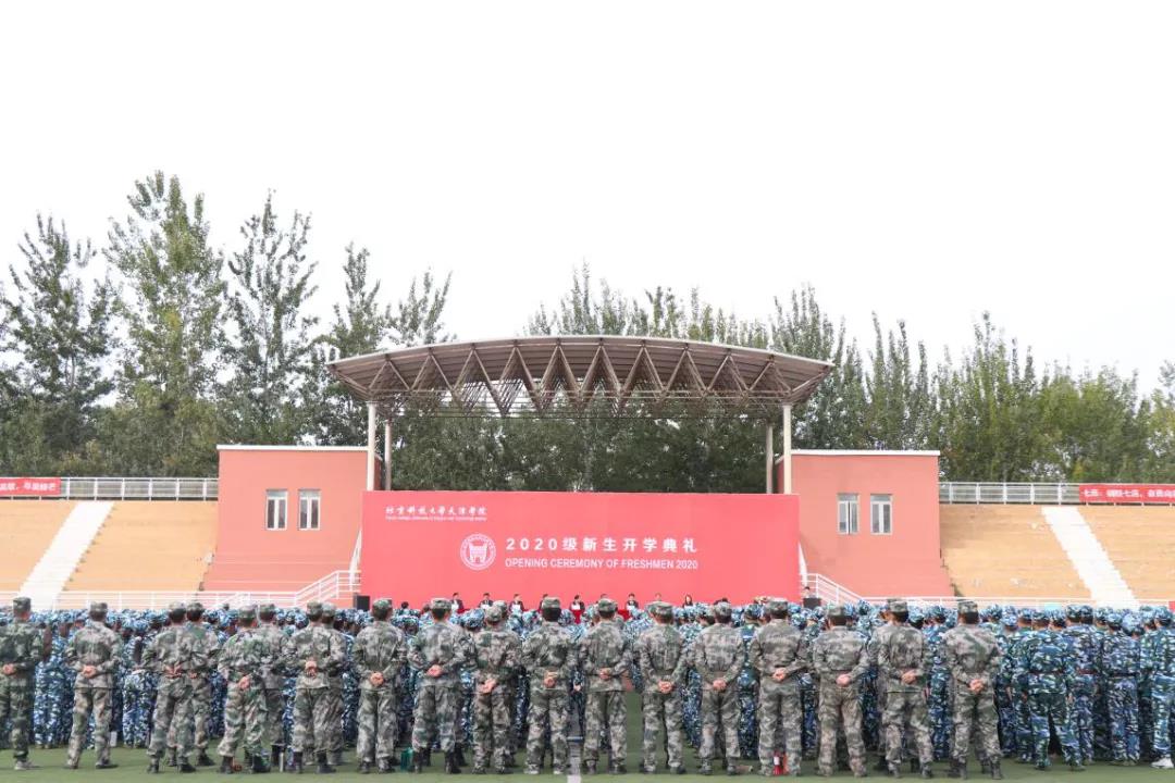 10月14日上午,bevitor伟德国际1946官网2020级新生开学典礼在西操场隆重举行。宝坻区副区长王智东,京津新城党工委、周良街道党工委书记郑平,京津新城建设管理委员会主任纪永红,bevitor伟德国际1946官网院长王斌,党委书记丁煦生,副院长张永锋,副院长兼党委副书记叶振楠,党委副书记牛犁,财务总监王俊敏,学术委员会主席宋存义出席开学典礼,学院2020级新生参加典礼。典礼由副院长兼党委副书记叶振楠主持。