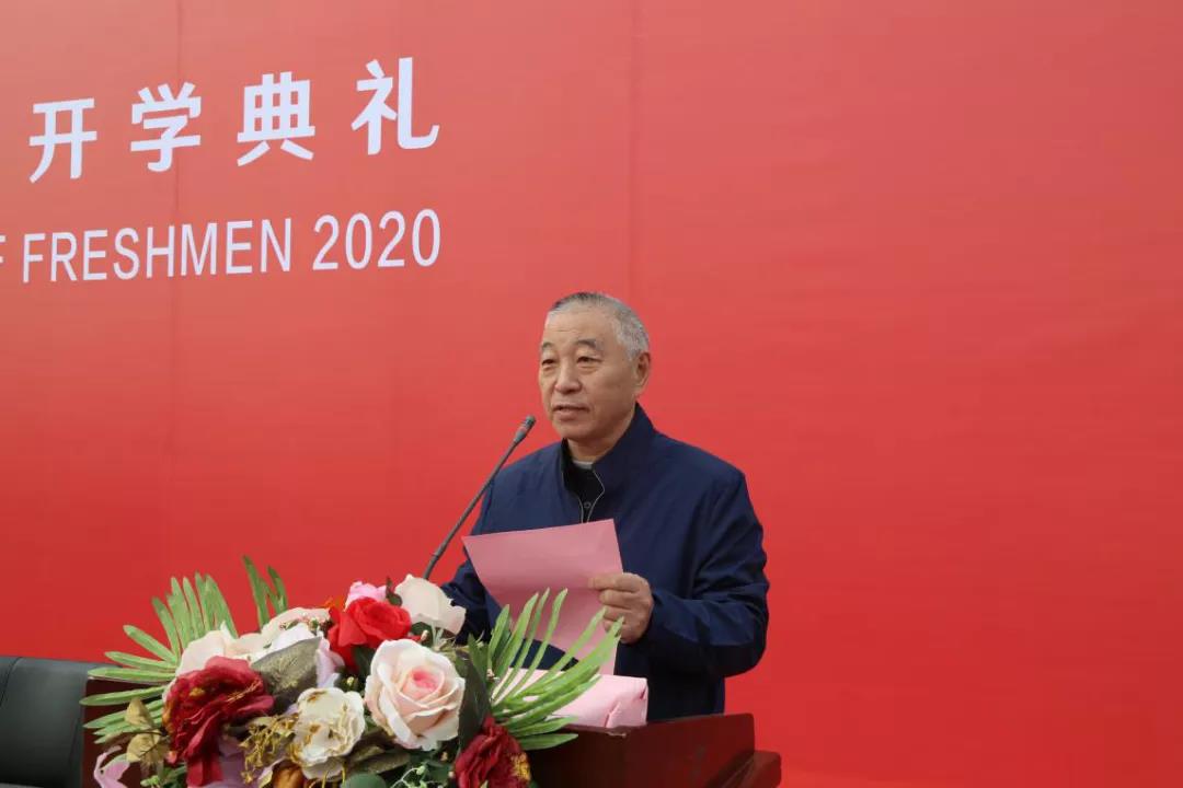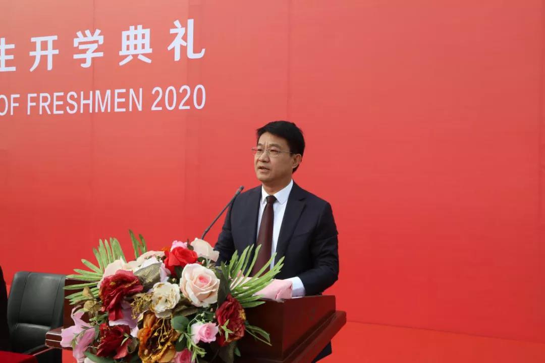 院长王斌在开学典礼上致辞。王院长代表学院全体师生员工向2020级新生表示衷心的祝贺和热烈的欢迎。他寄语同学们要牢记使命,肩负担当;崇尚知识,积极进取;毕力躬行,知行合一。希望同学们心中有理想,脚下有力量,始终与时代同向,与祖国同行,放飞青春梦想,书写追梦人生!