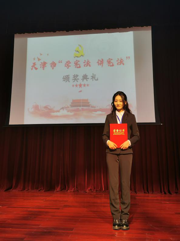 9月29日,天津市第四届学生“学宪法 讲宪法”演讲比赛暨教育部第五届全国学生“学宪法 讲宪法”活动天津赛区选拔赛在中国民航大学举行。伟德官网法律系法学1906班梁宇菲同学经初赛、决赛层层选拔,最终荣获市高校组一等奖。