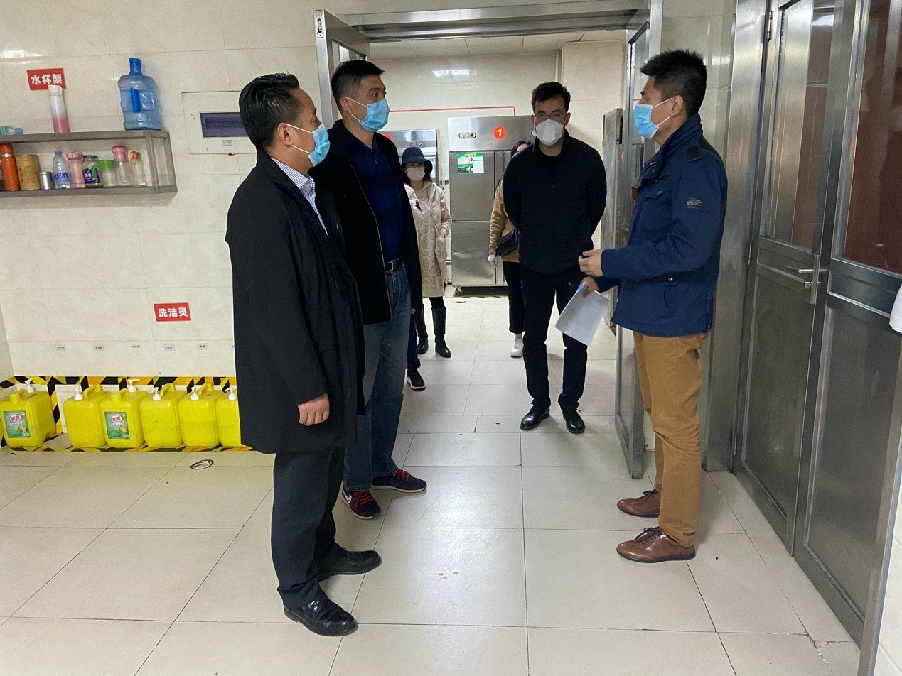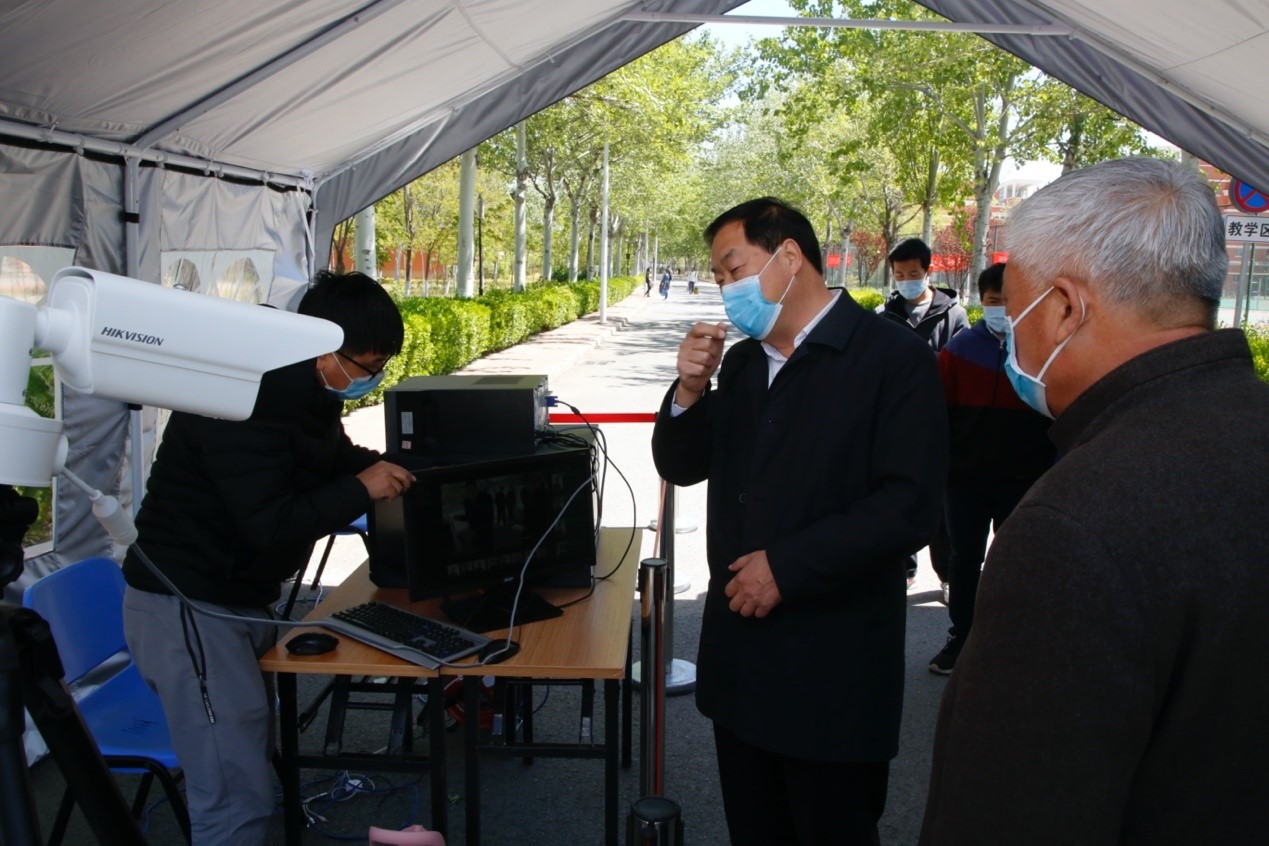 4月23日上午,市教委学生处杨明,市卫生健康委王健鹏,市市场监管委李卿,市教委学生处何飞一行到伟德官网进行复课开学条件核验,宝坻区教育局党委书记、局长周振亮,副局长刘淑玲陪同检查和指导工作。学院院长王斌,副院长张永锋、叶振楠,财务总监王俊敏,相关部门负责同志陪同检查。