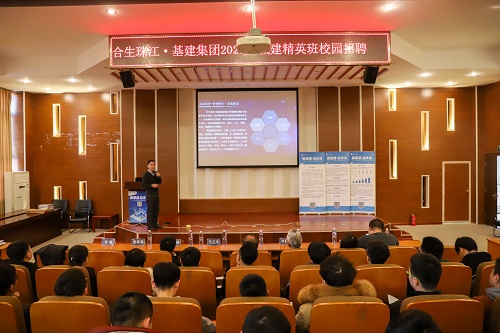 宣讲会上,首先由刘胜富院长致辞,他回顾了以往两届城建精英班的建设和发展,对集团对学院工作的支持表达了感谢,并鼓励同学们抓住宝贵机会;接下来,吴立特总表达了对城建精英班一直以来的各项工作的肯定,并鼓励同学们积极参与城建精英班学习与培养;随后,马卫华总为同学们详细地介绍了集团的基本情况和发展历程,着重讲解了城建精英班的组织与考核形式,并代表基建集团欢迎同学们踊跃报名参加城建精英班;之后,城市建设学院16级学生、2020届城建精英班学员、现任职实习于集团总部的杨庆辉和任职实习与华北区域天津项目的王鑫两位同学分别与同学们分享了在城建精英班和集团学习工作中的亲身经历。
