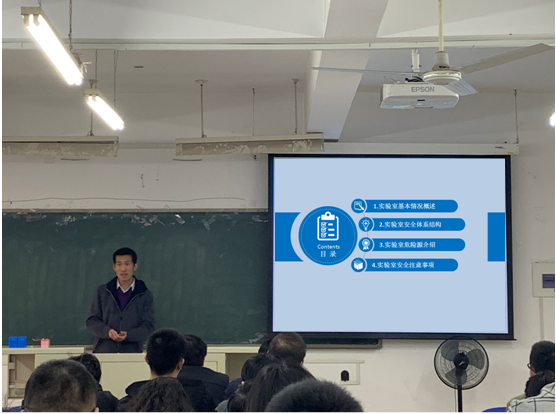实验室管理中心综合管理科科长孙大志老师向大家介绍了实验室基本情况概述;实验室安全体系结构;实验室危险源介绍;实验室安全注意事项,强调特别是实验教师应做好实验安全管理工作,严格遵守实验室各项操作规程,加强对学生的实验安全教育。