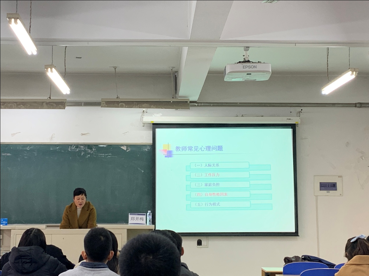 11月13日,新教师入职培训“专家讲座”在8教105顺利举行。此次讲座邀请了郑开梅副教授,现任主治医师、中级心理治疗师、天津市医药专家协会心理学组常委,作题为“心理健康”专题培训讲座。