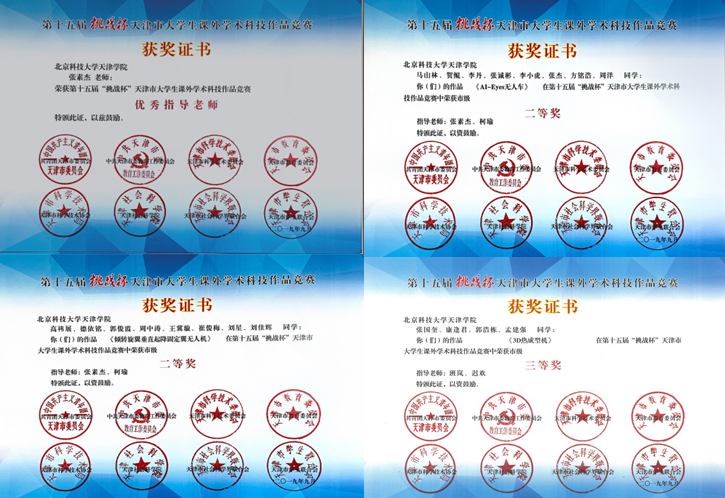 近日,由共青团天津市委员会、中共天津市委教育工组委员会、天津市科学技术局、天津市教育委员会、天津市科学技术学会、天津社会科学院、天津市社会科学联合会、天津市学生联合会联合主办的第十五届“挑战杯”天津市大学生课外学术科技作品竞赛决赛成绩揭晓,伟德官网学生团队斩获市级二等奖2项、三等奖1项;伟德官网无人机系老师张素杰荣获市级“优秀指导教师”荣誉称号。