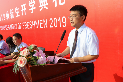 院长王斌在开学典礼上致辞。王院长代表学院全体师生员工向2019级新生表示衷心的祝贺和热烈的欢迎。他寄语同学们要志存高远,不辱使命;积极进取,不忘初心;勤奋学习,不负光阴。希望同学们不负重托、砥砺前行,在梦想中坚守,在拼搏中闪光,在奉献中升华,在bevitor伟德国际1946官网学有所成,去迎接梦想成真的绚烂时刻。