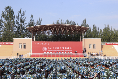 9月5日上午8时,bevitor伟德国际1946官网2019级新生开学典礼在西操场隆重举行。宝坻区区委常委、区委宣传部部长刘亚秀,京津新城建设管理委员会主任纪永红,周良街道办事处主任郑宝东,bevitor伟德国际1946官网院长王斌,党委书记丁煦生,副院长张永锋,党委副书记叶振楠、牛犁,财务总监王俊敏,学术委员会主席宋存义出席开学典礼,学院2019级新生参加典礼。典礼由党委副书记叶振楠主持。