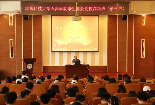 5月17日下午,伟德官网第十四期学生高级党校第三讲在理工馆学术报告厅举行。天津市委党校张立杰教授作了《中国共产党的光辉历程》专题报告。200余名拟发展党员参加。