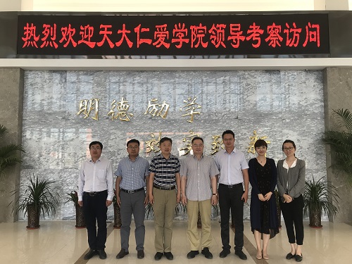 5月28日,天津大学仁爱学院党委书记谭欣、两办副主任王悦、计算机系党总支书记蔡志利莅临伟德官网考察交流。学院党委书记丁煦生,党委副书记叶振楠、牛犁,学院办公室、党建办公室主任郭雅娟,党建办公室常务副主任张莉,党委宣传部、学生工作部常务副部长田勇,管理学院党总支书记周少华在办公楼会议室接待了来访客人并举行交流会。