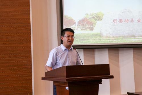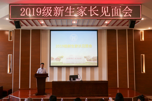 王院长代表学院全体教职工对2019级新生及家长的到来表示热烈的欢迎和感谢,并向新生家长们介绍了学院发展的整体思路、学科专业设置、师资队伍建设、人才培养、办学成果、对外合作交流等情况,同时希望各位家长能够关注学生在大学期间的学习和生活,加强与学生、学校的交流和沟通,积极配合学校,正确引导孩子健康成长,帮助他们成长成才。