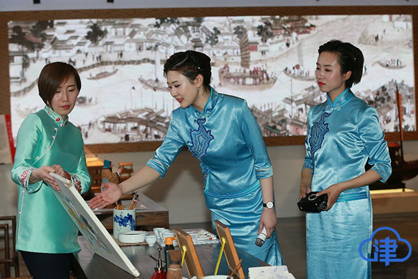 天津外国语大学研一学生邵奕菲和同伴们前期接受了礼宾礼仪、普通话、英语口译方面的培训。“我们这些讲解员各有分工,每人负责一个版块的讲解工作。英语讲解要做到准确听懂准确表达,我查阅了很多资料,了解讲解内容中关于高科技方面专业术语的含义。我也在讲解过程中收获了自信和力量。”推介现场,讲解员们优雅大气的造型得益于天津美术学院设计人员独特的服装和发饰的造型设计。灵动典雅的蓝色修身旗袍、中式盘发、举手投足间的端庄,无不彰显了天津悠久历史人文的积淀流淌在天津人血液中的优良基因。(津云新闻记者吴宏 摄影马宬)