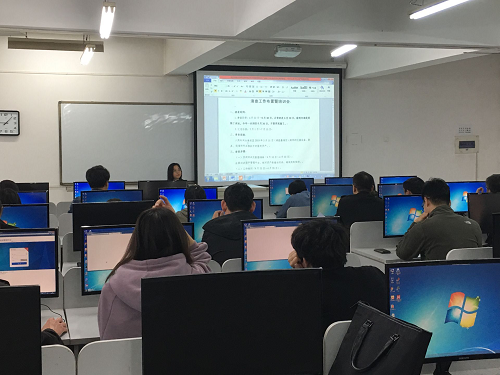 接着王丹对资产管理平台总体进行介绍,系统讲解资产管理系统操作方法,逐一演示各个模块的使用功能,对资产清查、资产登记、变动申请等常见业务的系统操作进行了详细讲解,并带领大家一起上机操作,各部门资产管理员也跟随操作步骤和方法进行学习和掌握。