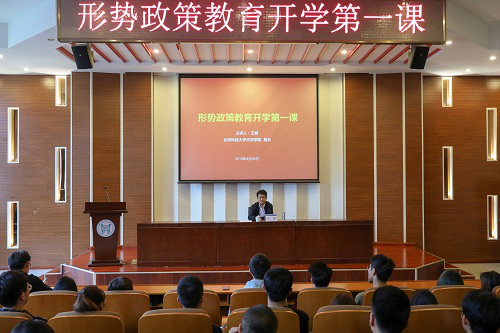 为深入贯彻学习党的十九大精神和习近平新时代中国特色社会主义思想,4月28日下午,伟德官网院长王斌为学生讲授形势政策教育开学第一课,300余名学生党员和干部聆听了讲课。