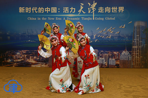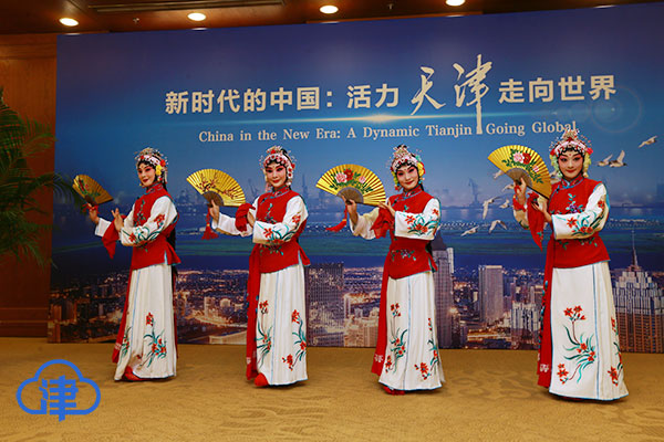 津云新闻讯:四位京剧花旦,两分钟的亮相,全场的外宾被这一方略显局促空间里的光彩吸引。4月16日,新时代的中国:活力天津走向世界推介会现场,天津青年京剧团四位花旦表演的京剧《卖水》惊艳全场。