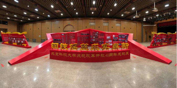 展览采用“红旗环绕五星”的整体布局,聚焦改革开放以来学校发展进程中的重大成果、重要时点和重点事件,内容涵盖党建和思想政治工作、人才培养、科学研究、社会服务、文化传承创新、国际交流与合作等多个方面。