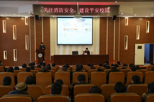 为强化学院后勤保障工作人员的消防安全意识,提升防范和抗御火灾的能力,2018年11月23日在学术报告厅,学院特别邀请宝坻消防支队九园中队中队长张天宇为学院后勤保障工作人员做消防安全专题培训,本次培训会由后勤处副处长刘杰主持,后勤处、基建产业处机关行政人员及下属各职能中心全体工作人员共计200余人参加本次培训。